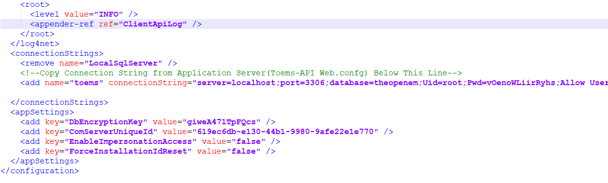 jackized I take it this is a typo? Should be Toec. A completed Toems-API web.config file should look something like this